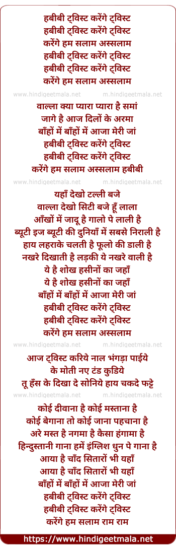Lyrics of Habibi Twist Karenge Twist - हबीबी ट्विस्ट करेंगे ट्विस्ट