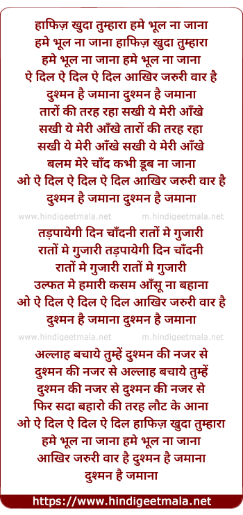 Lyrics of Hafiz Khuda Tumhara - हाफिज़ खुदा तुम्हारा