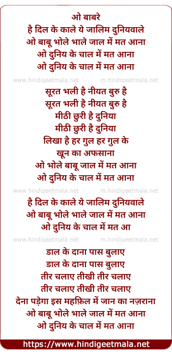 o babu bhole bhale jaal me mat aana
