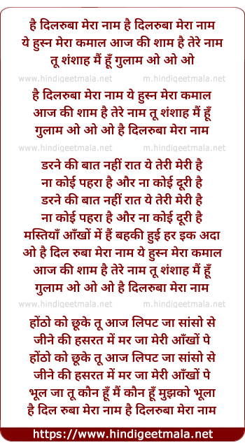 Lyrics of Hai Dilruba Mera Naam - है दिलरुबा मेरा नाम