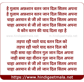 Lyrics of Hai Ghulam Afshaan Watan Jaan Dil Sitan Apna - है ग़ुलाम अफ़शान वतन जान दिल सितम अपना