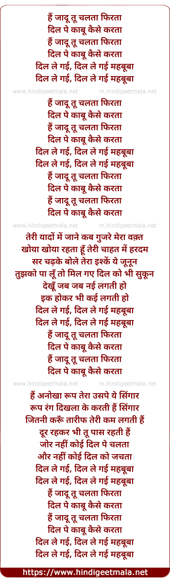 Lyrics of Hai Jadu Tu Chalta Firta - हैं जादू तू चलता फिरता