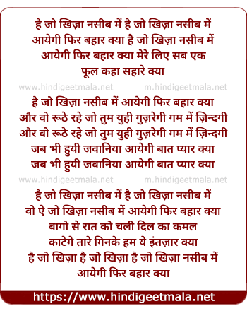 Lyrics of Hai Jo Khiza Nasib Me - है जो खिज़ा नसीब में