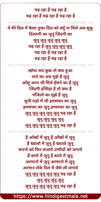Lyrics of Hai Junu The Dj Suketu Mix - चढ़ रहा हैं चढ़ रहा है