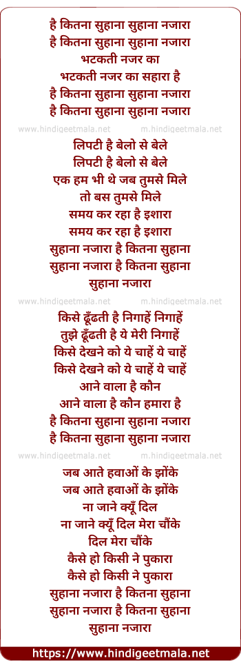 Lyrics of Hai Kitna Suhana - है कितना सुहाना