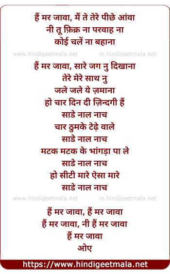 hai mar jawa, mai te tere pichhe aawa
