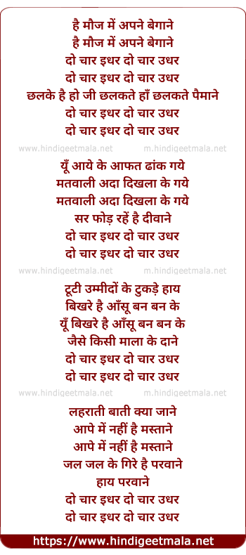 Lyrics of Hai Mauj Me Apne Begane - है मौज में अपने बेगाने