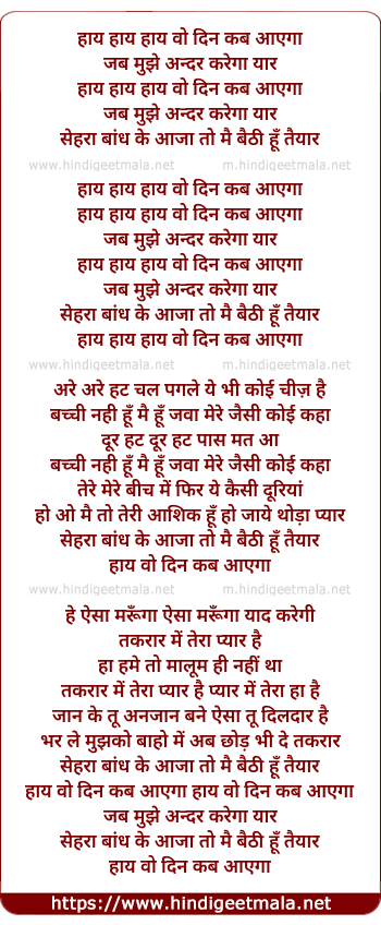 Lyrics of Haye Vo Din Kab Ayega - हाय वो दिन कब आएगा