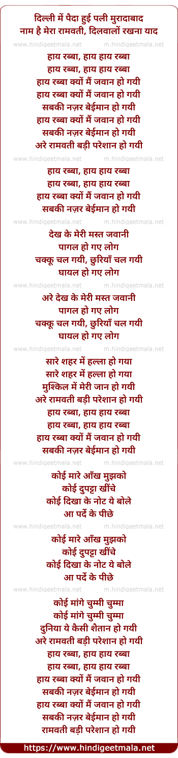 Lyrics of Hai Rabba Ramwati - है रब्बा रामवती