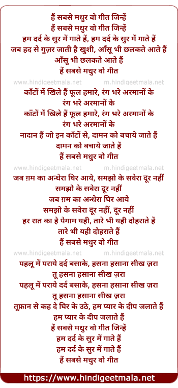 Lyrics of Hai Sabse Madhur Woh Geet - हैं सबसे मधुर वो गीत जिन्हें