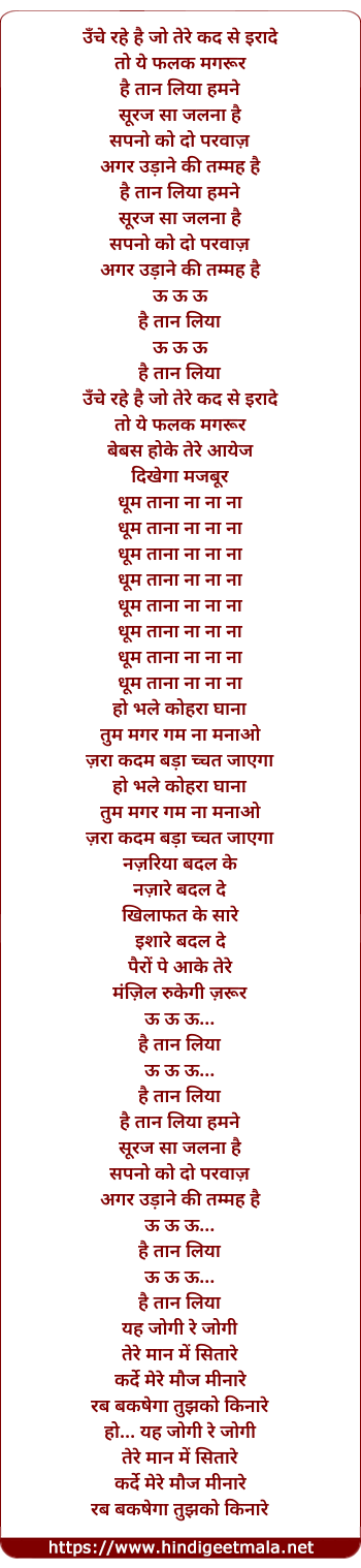 Lyrics of Hai Thaan Liya Humne - है ठान लिया हमने