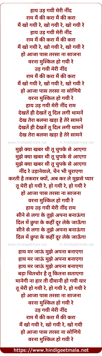 Lyrics of Haye Ud Gayi Meri Nind - हाय उड़ गयी मेरी नींद