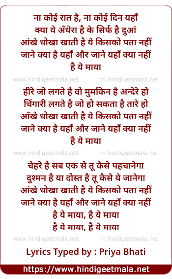Lyrics of Hai Ye Maya - है ये माया
