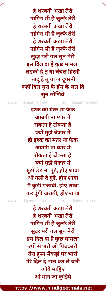 Lyrics of Hain Sharbati Ankha Teri - है शरबती अंखा तेरी