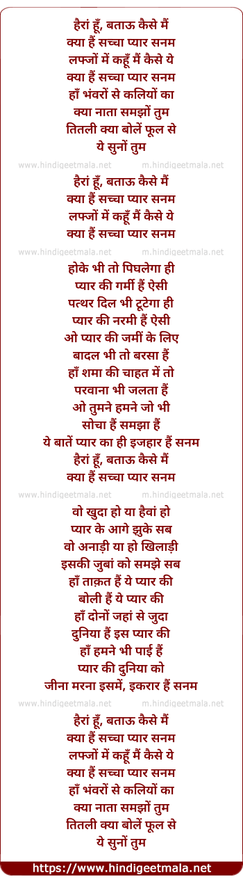 Lyrics of Hairan Hu - हैरां हूँ, बताऊ कैसे मैं