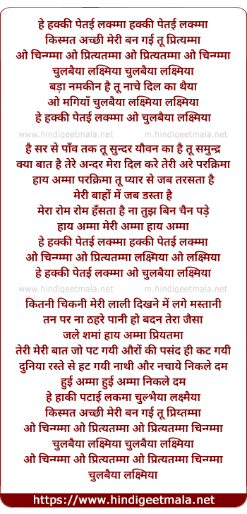 Lyrics of Haki Petai Lakamma - हक्की पेतई लक्म्मा