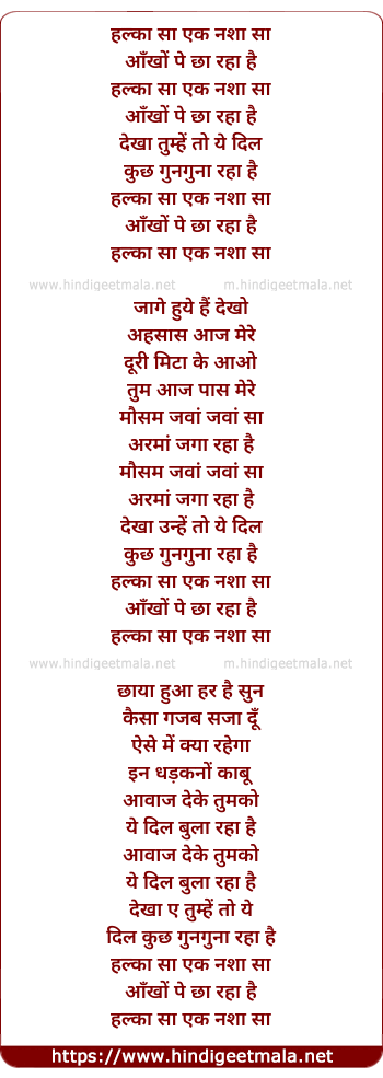 Lyrics of Halka Sa Ek Nasha - हल्का सा एक नशा सा