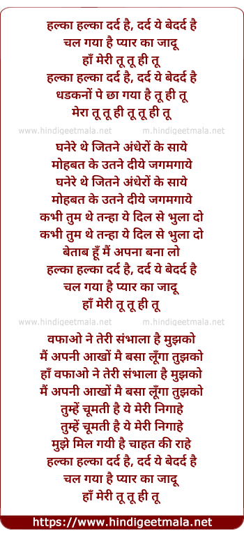 Lyrics of Halka Halka Dard Hai, Meri Tu Tu Hi Tu - हल्का हल्का दर्द है, मेरी तू तू ही तू