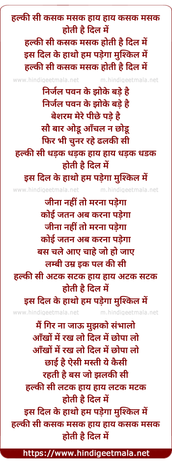 Lyrics of Halki Si Qasak Masak Hoti Hai Dil Men - हल्की सी कसक मसक होती है दिल में