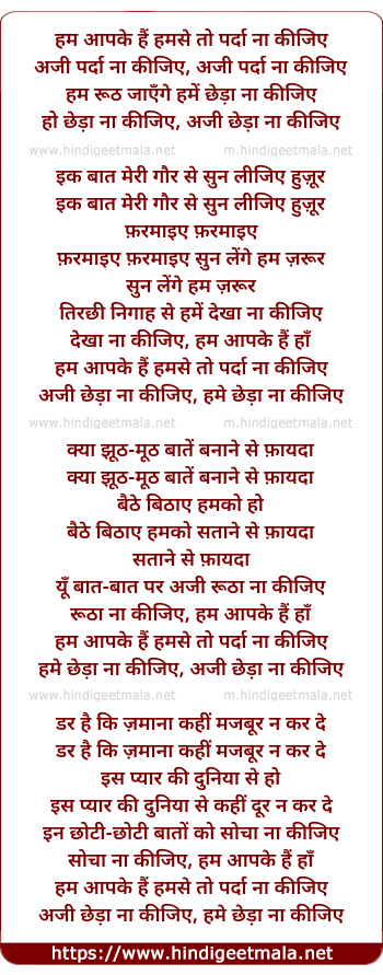 Poetic Translation - Lyrics of Ham Aapke Hain Hamase Toh Parada Naa Kijiye - हम आपके हैं हमसे तो पर्दा ना कीजिये