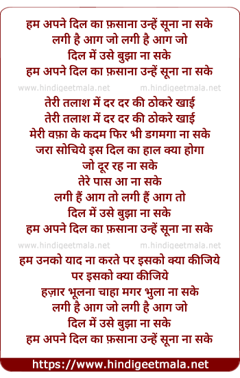 Lyrics of Ham Apne Dil Kaa Fasana Unhe Soona Naa Sake - हम अपने दिल का फ़साना उन्हें सूना ना सके