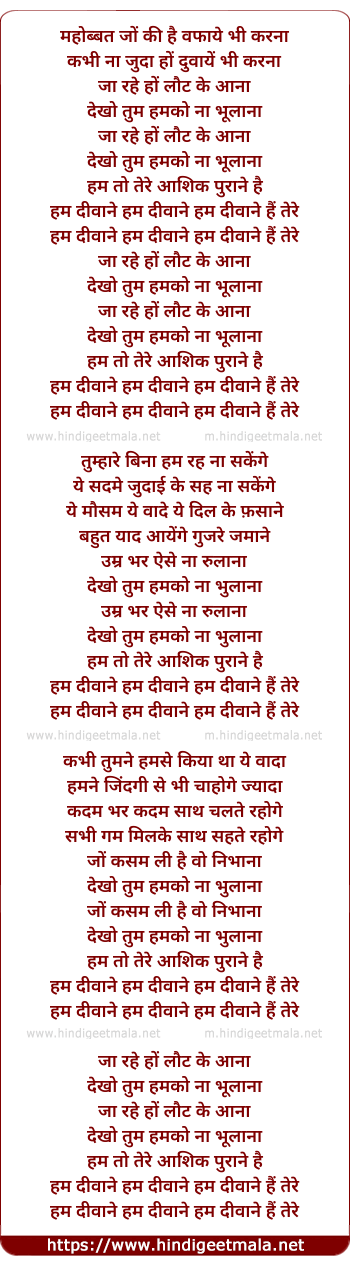 Lyrics of Ham Divane Ham Divane - हम दीवाने हम दीवाने