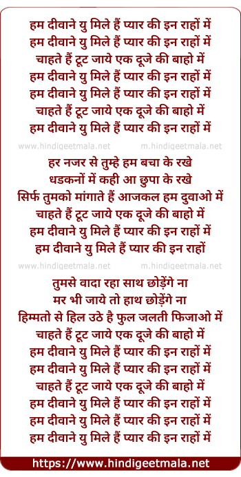 Lyrics of Ham Divane Yu Mile Hai - हम दीवाने यूँ मिले हैं