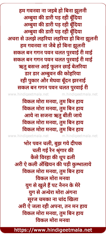 Lyrics of Ham Gavanavaa Naa Jaibe Ho Bina Jhulani - हम गवनवा ना जइबे हो बिना झूलनी