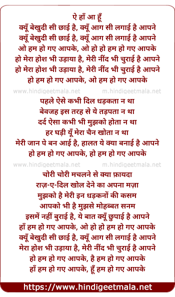 Lyrics of Ham Ho Gaye Aap Ke, Kyun Bekhudi Si Chhayi Hai - हम हो गए आप के, क्यूँ बेखुदी सी छाई है