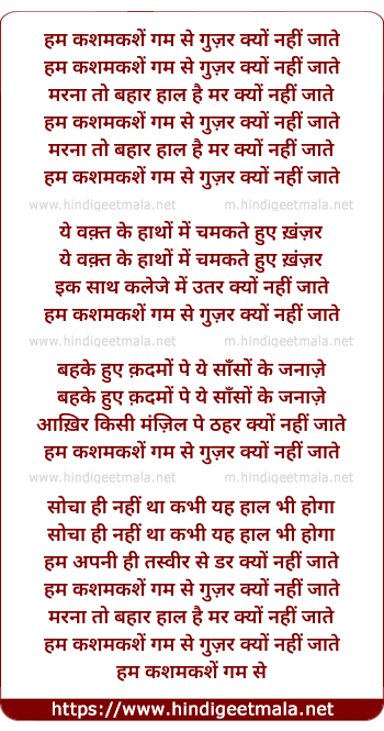 Lyrics of Ham Kashm Kash-E-Gam Se Gujar Kyon Nahi Jate - हम कशमकश-ए-गम से गुज़र क्यों नहीं जाते
