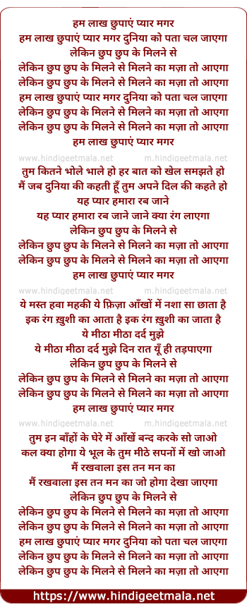 Lyrics of Ham Lakh Chhupaye Pyar Magar Duniya - हम लाख छुपायें प्यार मगर