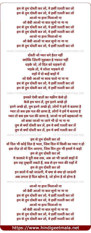 Lyrics of Ham Se Tum Dosti Kar Lo - हम से तुम दोस्ती कर लो