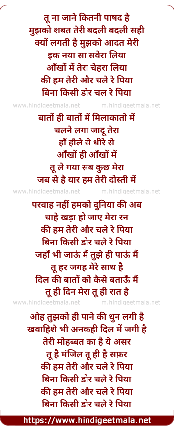 Lyrics of Ham Teri Or Chale - हम तेरी और चले
