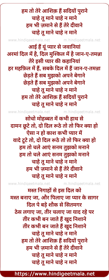 Lyrics of Ham Toh Tere Aashik Hain Sadiyo Purane - हम तो तेरे आशिक़ हैं सदियों पुराने