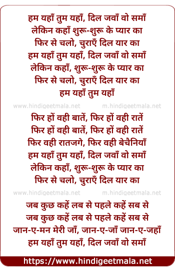 Lyrics of Ham Yaha Tum Yaha Dil Jawa - हम यहाँ तुम यहाँ दिल जवाँ