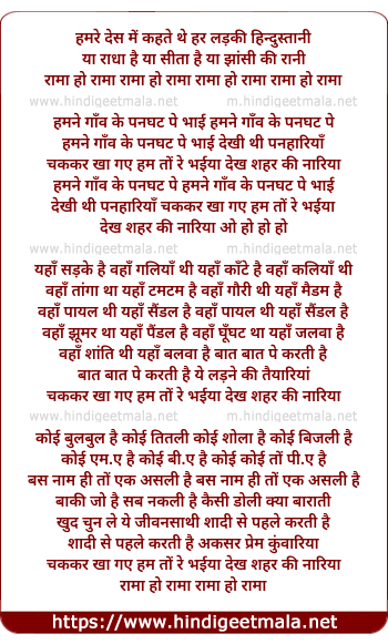 Lyrics of Hamaare Desh Men, Hamane Gaanv Ke Panaghat Pe - हमारे देश में हमने गाँव के पनघट पे