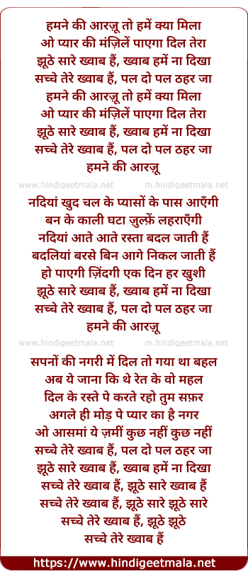 Lyrics of Hamane Ki Aaraju To Hame Kya Mila - हमने की आरज़ू तो हमें क्या मिला