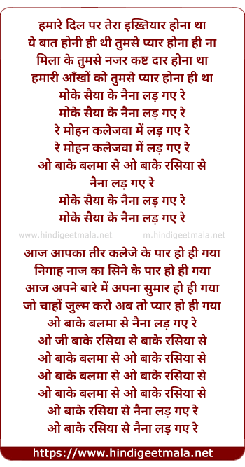 Lyrics of Hamare Dil Par Tera Ikhtiyar Hona Tha - हमारे दिल पर तेरा इख़्तियार होना था