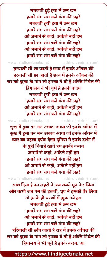 Lyrics of Hamare Sang Sang Chale Ganga Ki Lehare - हमारे संग संग चले गंगा की लहरे
