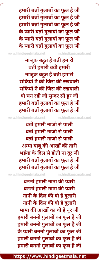 Lyrics of Hamari Banno Gulabo - हामारी बननो गुलाबों
