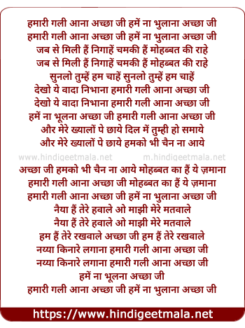 Lyrics of Hamari Gali Aana Achha Ji - हमारी गली आना अच्छा जी