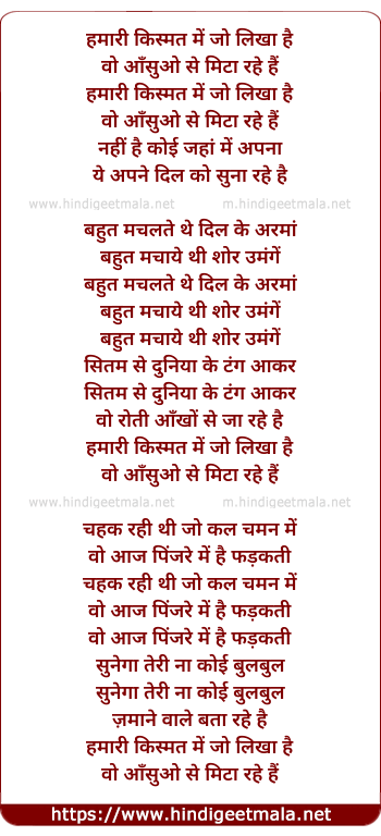 Lyrics of Hamari Kismat Mein Jo Likha Hai - हमारी किस्मत में जो लिखा है