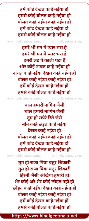 Lyrics of Hame Koi Dekhat Kahe Naiya Ho - हमें कोई देखत काहे नईया हो