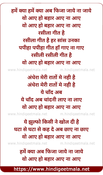 Lyrics of Hame Kya Ab Khizan Jaye Na Jaye - हमें क्या हमें क्या अब फिजा जाये ना जाये