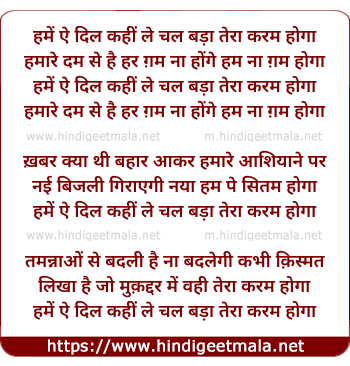 Lyrics of Hamen Aye Dil Kahin Le Chal - हमें ऐ दिल कहीं ले चल