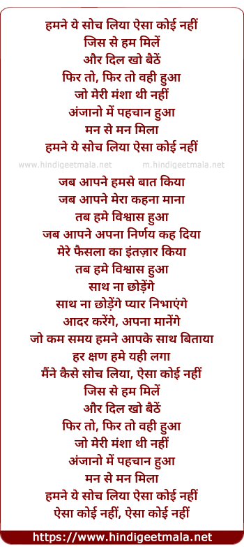 maine kaise soch liya, aisa koi nahi