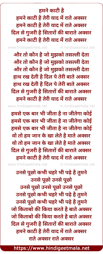 Lyrics of Hamne Kaati Hai Teri Yaad Me - हमने काटी है