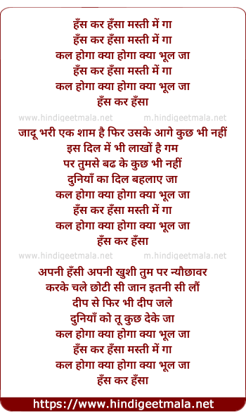 Lyrics of Hanskar Hansa - हँसकर हँसा