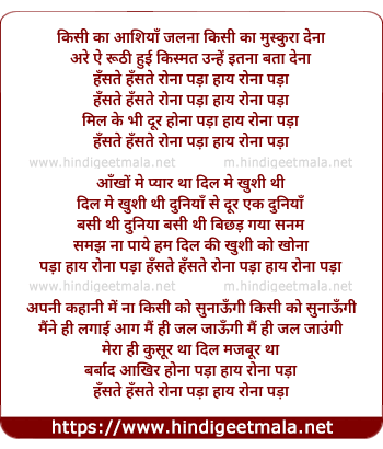 Lyrics of Hanste Hanste Rona Pada - हँसते हँसते रोना पड़ा