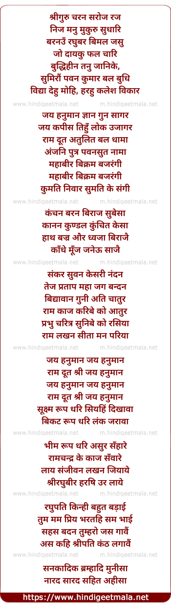 Lyrics of Hanuman Chalisa (Shankar Mahadevan) - हनुमान चालीसा